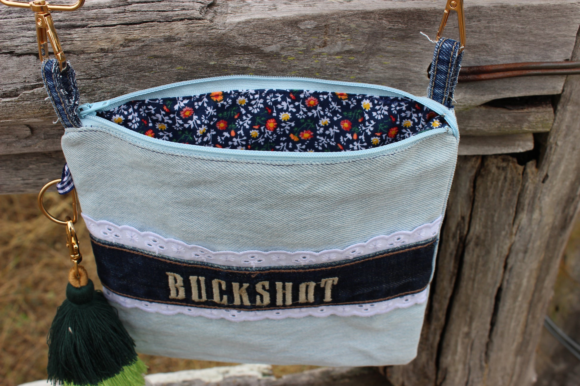 The Audrey Bag has the perfect combination of light and dark denim, made from recycled Circle L jeans.